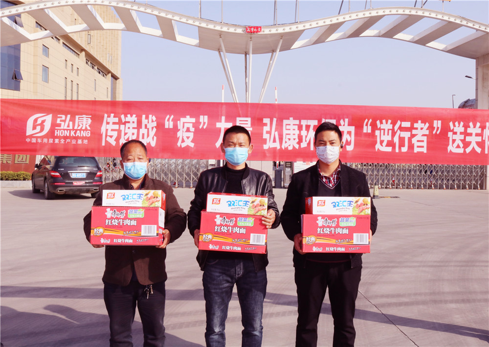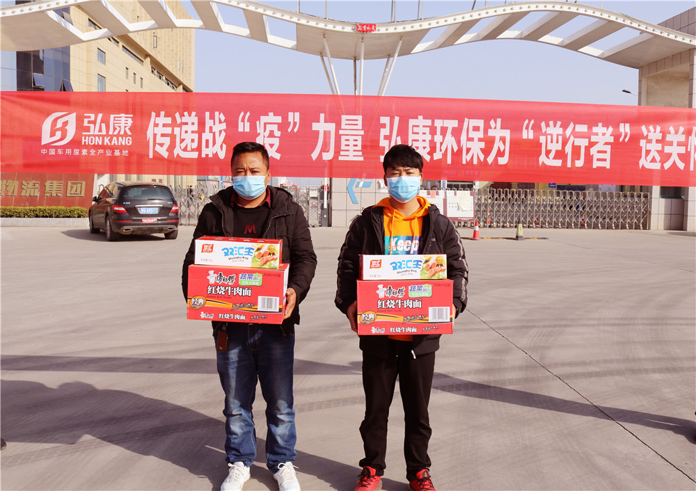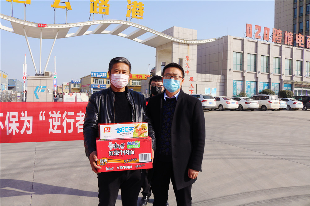 21日下午,赌球平台推荐总经理孙长城、副总经理郑伟一行在驻马店公路港和金桥社区设置"加油"点,为这些英雄逆行者们送上酒精、方便面、火腿肠等抗疫物资和生活用品。